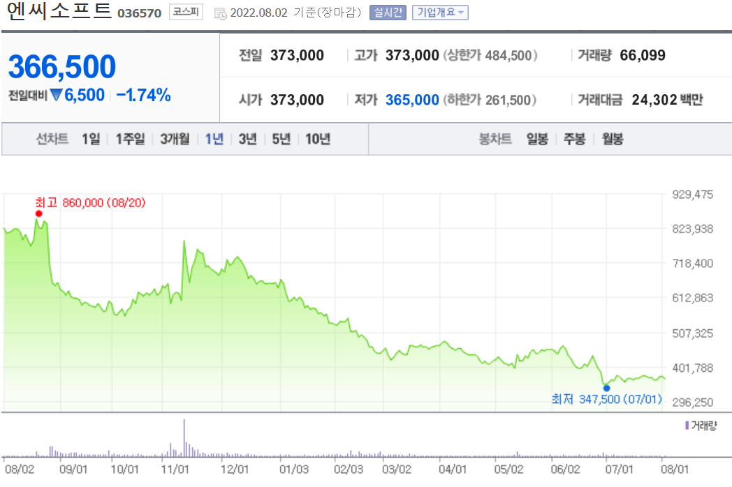 엔씨 소프트는 온라인, 모바일 게임 개발과 서비스가 주요 사업입니다.
