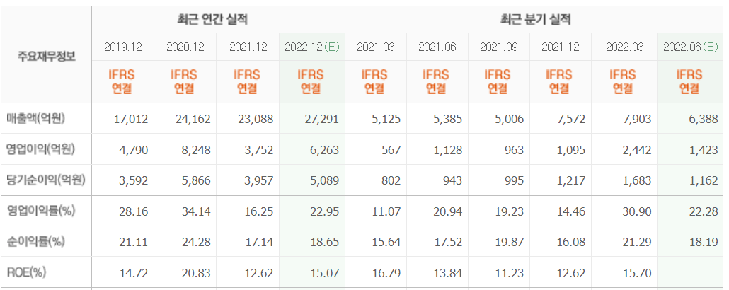 2022년 3월 전년동기 대비 연결기준 매출액은 54.2% 증가, 영업이익은 330.4% 증가, 당기순이익은 108.8% 증가하였습니다. 지속적인 컨텐츠 업데이트를 통해서 견고한 매출과 고객지표를 유지하고 있으며 영업이익의 상승세가 이어지고 있습니다.