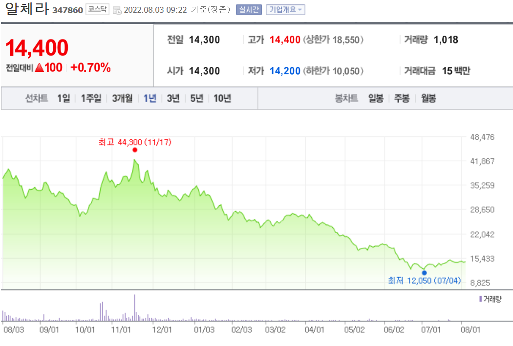 알체라는 2016년 설립되었으며, 2020년 영상 인식 인공지능 전문 기업으로 코스닥에 상장되었습니다.