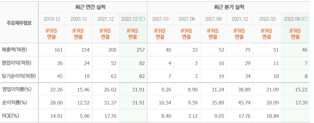 2022년 3월 전년 동기 대비 연결기준 매출액은 26.1% 증가, 영업이익은 187.3% 증가, 당기순이익은 53.2% 증가하였습니다. 라이선스 매출과 로열티 적용 칩 개수가 큰 폭 증가하며 외형 및 수익성 성장하며 특히 국내는 2배 수준으로 증가했습니다. 낮은 해상도 영상을 고해상도 영상으로 업스케일링해주는 슈퍼 레졸루션 기능의 매출 본격화로 추후 실적 개선이 기대됩니다.