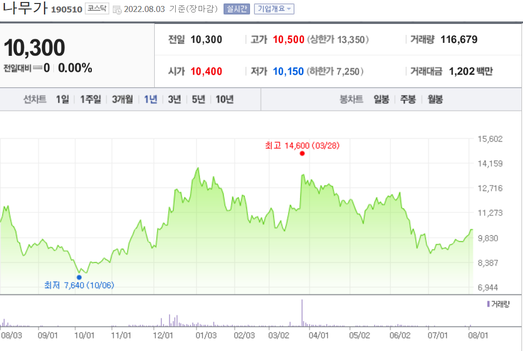 나무가는 2004년 10월 14일에 설립되었으며 2015년 11월 12일 코스닥 시장에 상장되었습니다.