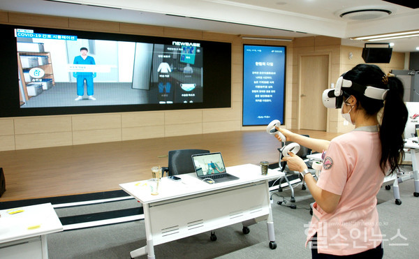 보건의료에 첨단 기술을 접목하여 개인 맞춤형 의료의 첨단화 및 고도화를 통한 환자 치료의 괄목할만한 성장과 발전을 이루기 위한 노력으로 메타버스(Metaverse)와 가상현실(Virtual Reality)에 대한 논의가 매우 활발하게 이루어지고 있습니다. 최근 병원에서도 신규 간호사를 대상으로 메타버스 플랫폼과 VR(가상현실) 기기를 활용하여 임상교육을 (사진) 하고 있습니다. 한림대성심병원은 신입 간호사의 숙련도와 응급처치 능력 향상에 중점을 두고 의료 메타버스 시뮬레이션 플랫폼 업체 뉴 베이스와 함께 이번 교육을 기획했습니다. 교육 프로그램은 병동, 수술실, 중환자실, 응급실 등에서 환자를 간호하는 상황과 비슷한 메타버스 환경을 구현해 신규 간호사가 현장에서 발생할 수 있는 다양한 응급상황을 경험하고, 각 상황에 필요한 간호 술기를 반복 훈련할 수 있도록 했습니다. 세부 교육과정으로는 ▲중증도 분류 ▲호흡기계(코로나19) 환자 간호▲신경계 사정(의식 사정, 동공반사, 근력 사정)▲정맥주사 ▲채혈 등이 있다. 메타버스 속 가상환자는 실제 환자처럼 간호사와 의사소통하고 술기에 반응합니다.